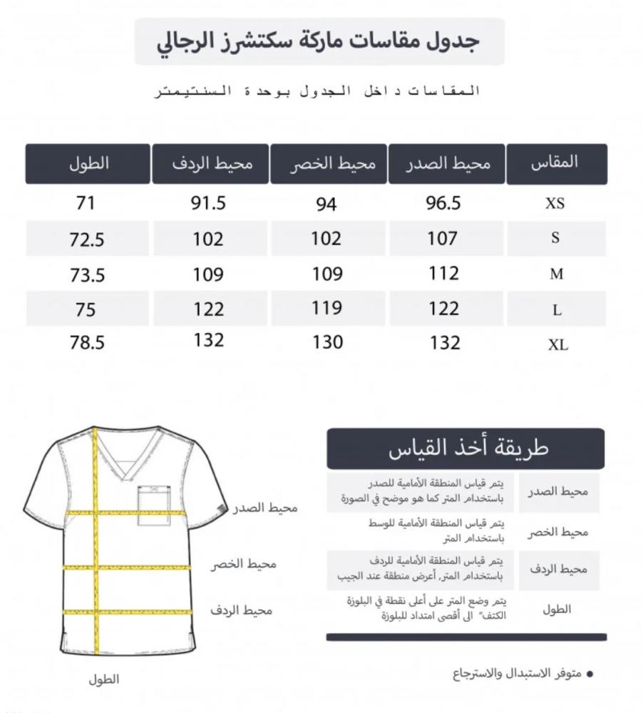سكراب سكيتشرز متمدد في جميع الإتجاهات مع شكل V في الرقبة ، لن تجد صعوبة في الحصول على جميع إحتياجاتك بدون الحصول على الجيوب التي تثقل عاتقك.